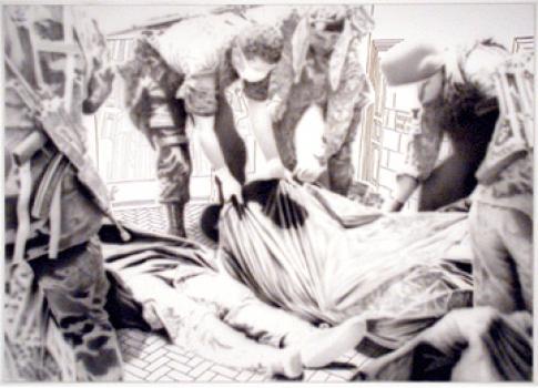Orgaz, 2002, Tusche und Acryl auf Papier, 88 x 123 cm